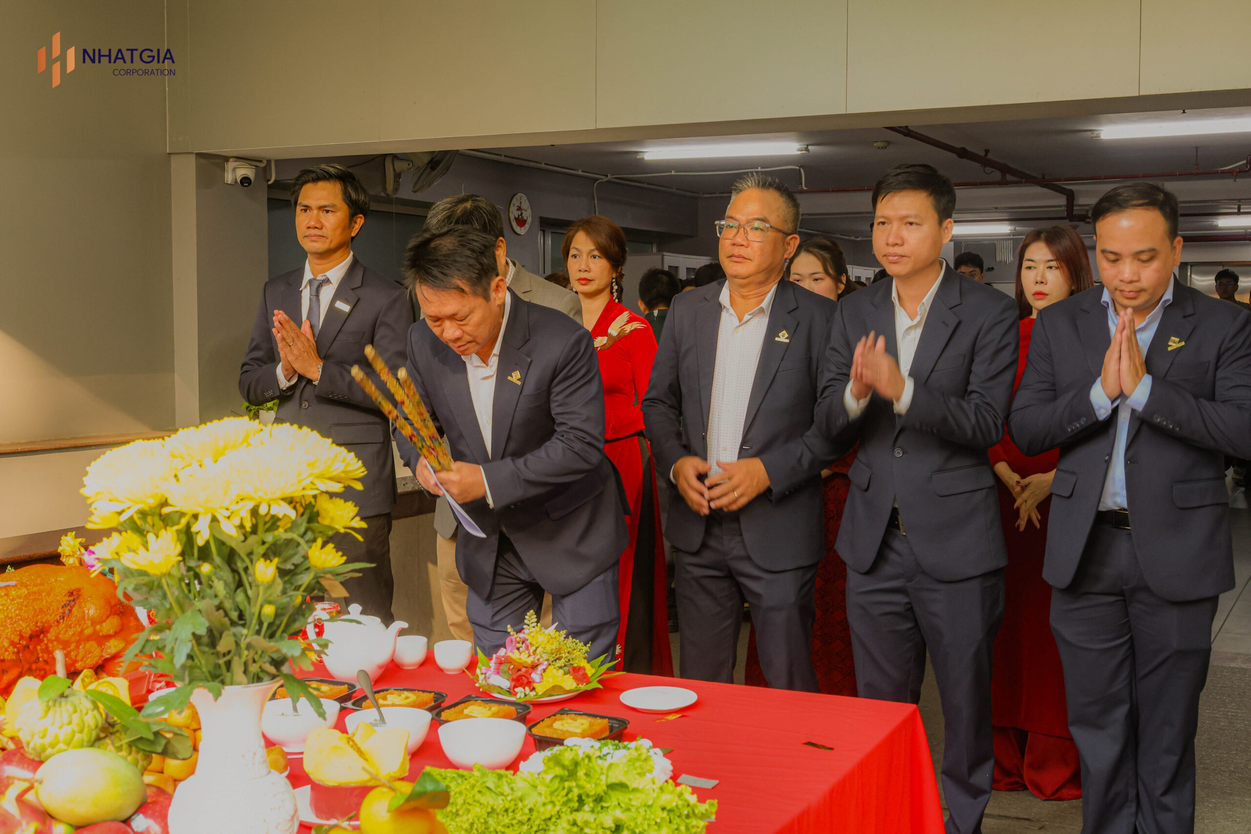 Buổi lễ diễn ra trong không gian trang trọng nhưng không kém phần nồng ấm. Đại diện ban lãnh đạo, ông Nguyễn Hải Hồ và bà Trần Tú Thanh đã trực tiếp thực hiện nghi lễ cúng bái đầu năm. Những nén hương thơm và lời khấn nguyện chân thành không chỉ cầu mong cho một năm mới bình an, vạn sự hanh thông mà còn thể hiện tinh thần đồng lòng của toàn thể cộng đồng doanh nghiệp tại tòa nhà Phước Thành.